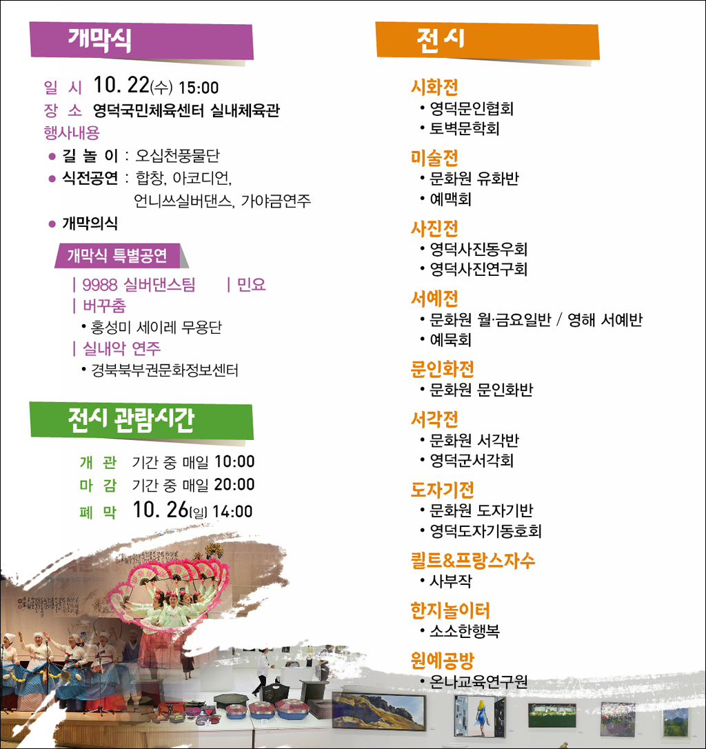 □ 주요내용 : 지역 예술인 창작 작품 전시, 체험 프로그램, 공연 등
