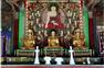 ‘영덕 장륙사 영산회상도’는 화기에 있는 기록을 통해 1764년(영조 40)이라는 제작 연대와 두훈(枓訓), 재옥(再玉), 전수(典秀) 등 9명의 제작 화승을 명확히 알 수 있는 불화이다. 비단 바탕에 채색으로 영축산에서 석가모니불이 법화경을 설법하는 순간을 표현하였는데, 화면 중앙에 크게 배치한 본존을 중심으로 10위의 보살과 10대 제자, 제석・범천, 4위의 타방불, 팔금강 등이 큰 원을 그리며 에워싸고 있다. 적녹의 강렬한 보색 대비를 기본으로, 화려한 화문 장식을 사용한 회화 기법이 돋보인다.